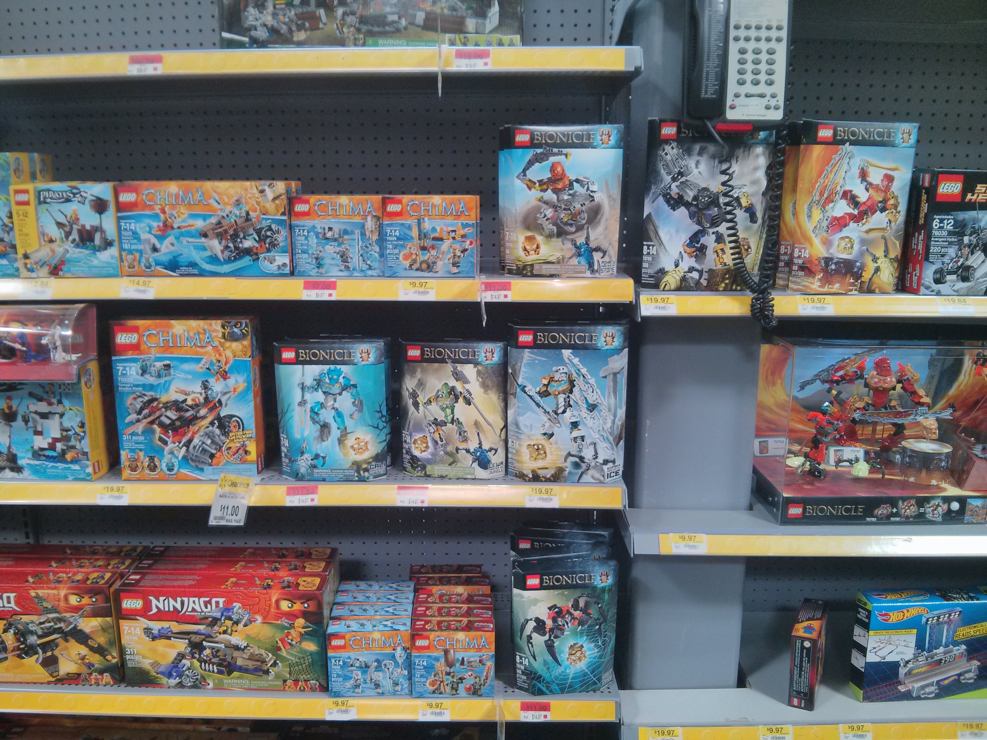 Lewa, Gali, Pohatu, and the Lord Of Skull Spiders have each been discounted to $11.00 USD at my local Walmart. There were no discounts to be seen on the “delux” characters like Tahu, Kopaka, and Onua. Despite the discounts, I did not see any of the summer villain sets on Walmart’s shelves. .