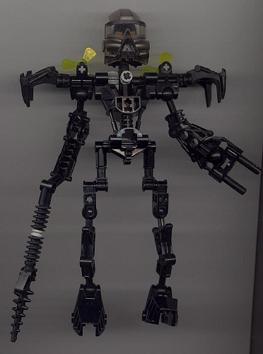 Consisting of a trans-black KAUKAU, parts from ONUA, WHENUA, a NUI-RAMA, a NUI-JAGA, at least two THROWBOTS, and some props that are probably from one of the various AQUAZONE lines, this is MIRA, a MOC submitted by MoD reader Aaron Yelensky. I guess GALI better watch out, because this guy looks like he means business.
